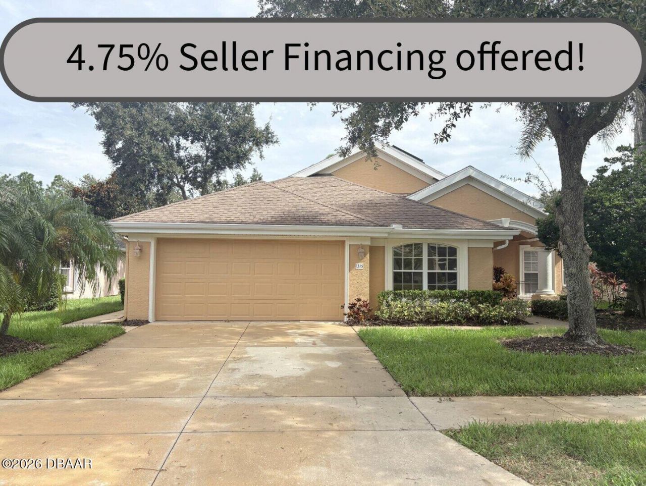 4.9 PERCENT SELLER FINANCING OFFERED! A Fantastic Buying Opportunity in one of the most sought after Gated Communities in Port Orange. Royal Palm boasts a fabulous Club House with a Gym, 2 Pools, a Jacuzzi, Tennis & Pickleball. Located less than a mile from the Pavilion Shopping Center, Publix Grocery & fabulous restaurants.This 4 bed 2 bath Concrete Block home features a NEW ROOF & many upgrades including both Tile & Laminate flooring, Granite countertops & a recently installed Rainsoft Home Water Softener System to name a few. The house greets you with an open concept floor plan with a beautiful Vaulted Ceiling Living Room, adjacent dining room & kitchen. The Master Bed is spacious with marble floors in the Master Bath. This home has a large garage and a huge backyard with plenty of space to fit a swimming pool, if desired.All homes are pressure washed yearly, painted every 5 yrs, fresh mulch yearly, Cable TV, Internet, Lawn, Pest Control are included in the HOA Fees!