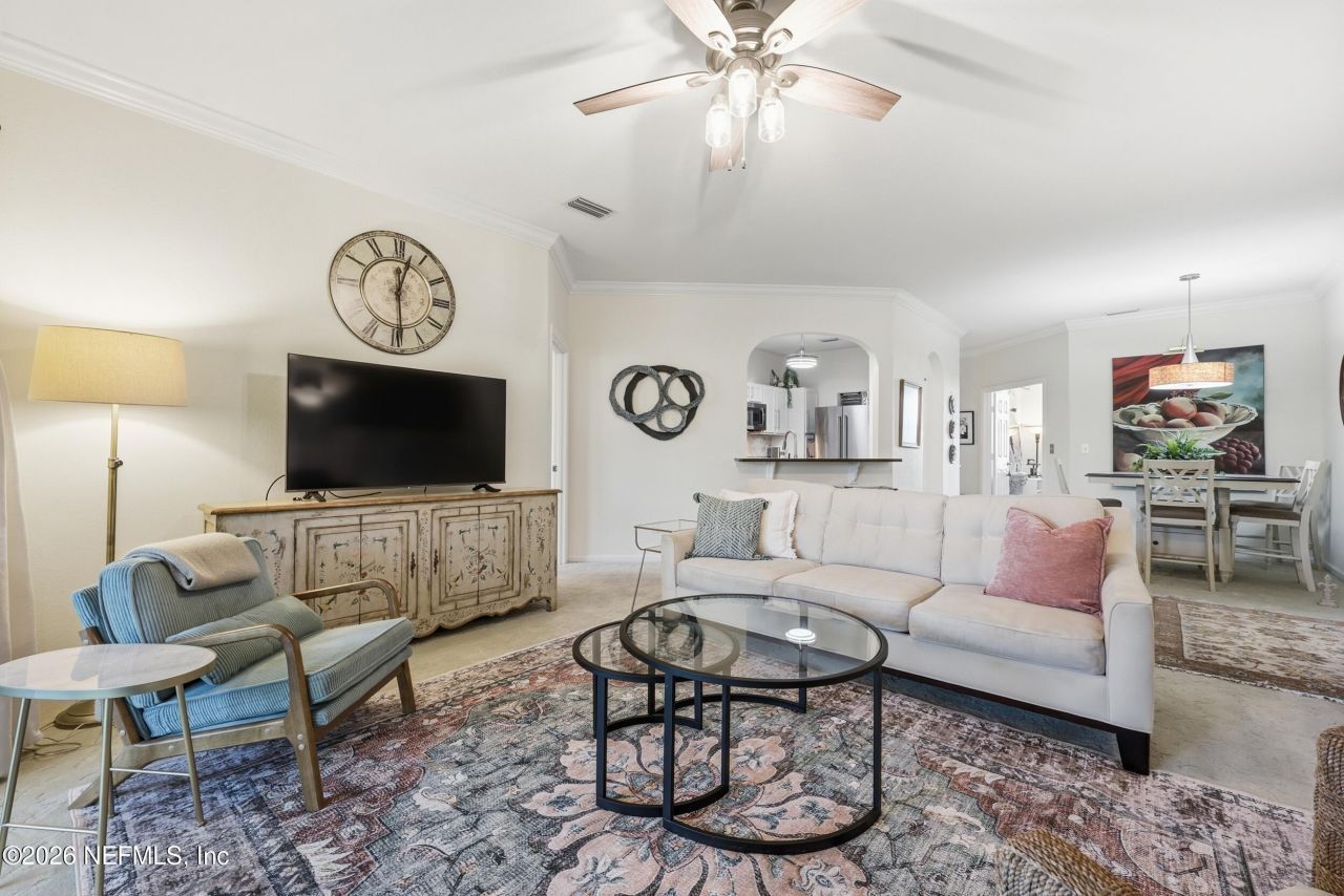 Enjoy total privacy in this pristine, updated second-floor residence that truly feels like living in a treehouse. Light, airy, and coastal in style, this 3BR/2BA home features 9-foot ceilings, crown molding in main areas, and upgraded fans and lighting throughout. The open living and dining space are enhanced by two screened porches, one overlooking a tranquil marsh and pond with fountains, the other shaded by mature trees. The kitchen offers stainless-steel appliances, granite countertops, tile backsplash with under-cabinet lighting, breakfast bar, and stainless sink with new faucet. The spacious owners' suite enjoys pond and preserve views from both the bedroom and adjoining porch, plus a walk-in closet and refreshed bath with dual sinks, soaking tub/shower, and private water closet. A split floor plan provides real privacy for two guest bedrooms and a full bath. Vista Cove is a beautifully planned, pet-friendly waterfront community spanning 67 lush acres with over a half-mile of frontage along the San Sebastian River. Nature paths, boardwalks, and a stunning riverfront pier provide perfect spots for fishing or taking in views of the St. Augustine skyline. Residents enjoy a newly renovated clubhouse with an elegant atrium entry, card and activity room, library, and on-site management. Additionally, a large resort-style pool, hot spa, restrooms, and covered and open patios are ideal for relaxing or entertaining. The community also offers a fully equipped fitness center with a second, heated pool and comfortable cabana. A rare and highly valued amenity, free RV and boat storage for residents, adds to the appeal. Vista Cove has been thoughtfully refreshed with new fiber-optic internet, updated roofs, and fresh exterior paint throughout. Ideally located minutes from Historic St. Augustine and just 30 minutes from Jacksonville, Vista Cove offers easy access to 42 miles of pristine Atlantic beaches. At Vista Cove, you're not just buying a home, you're stepping into a relaxed coastal lifestyle where the beach meets history. At Vista Cove, you're not just buying a home, you're stepping into a relaxed coastal lifestyle where the beach meets history.