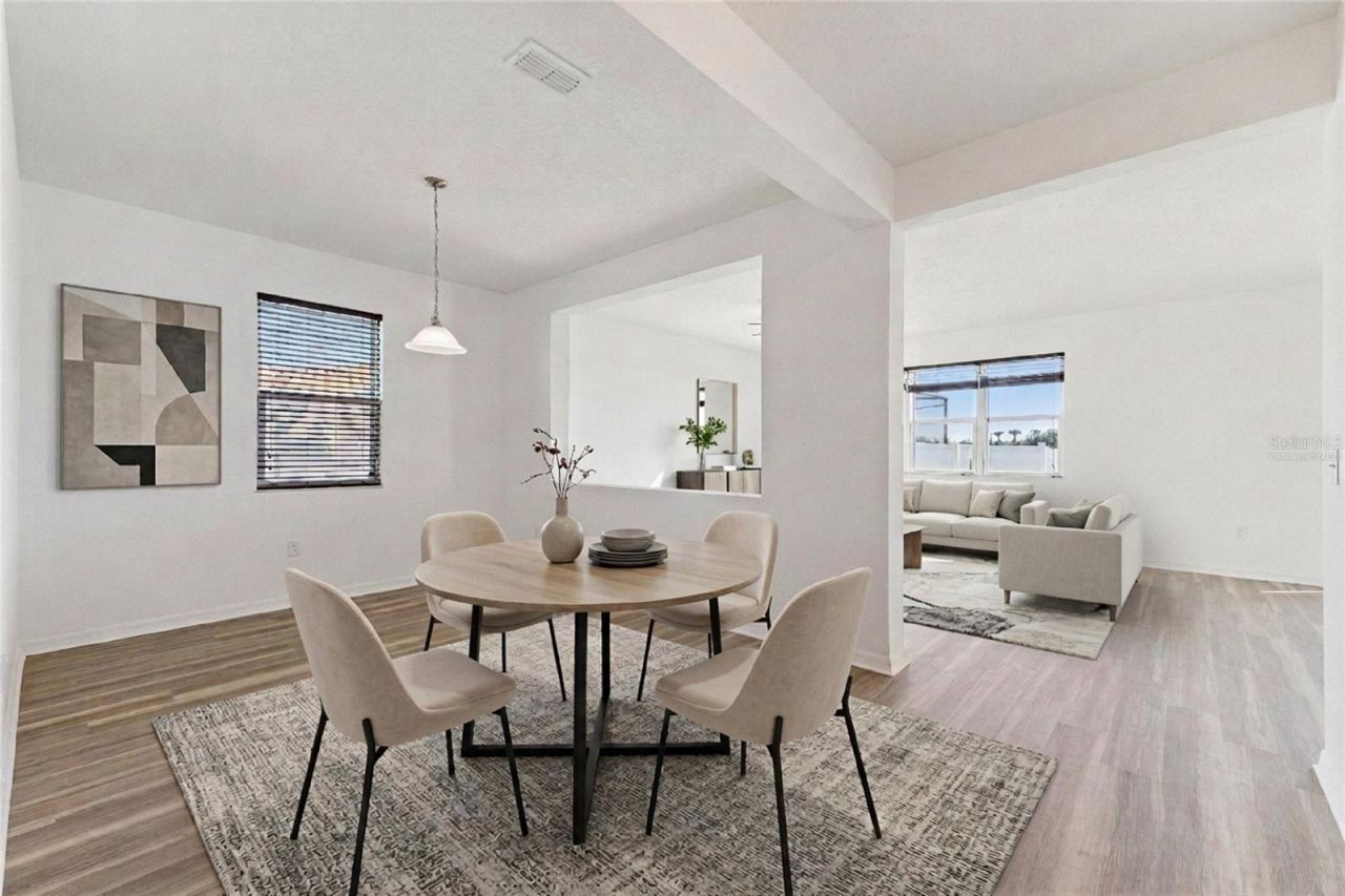 One or more photo(s) has been virtually staged. Wake up to peaceful pond views, enjoy quiet mornings on the screened lanai, and come home each day to a space that feels effortlessly comfortable and beautifully updated. Located in St. Cloud's desirable Gramercy Farms community, this move-in-ready single-story home blends style, functionality, and relaxed Florida living. With three bedrooms, two bathrooms, and a versatile bonus space that can easily serve as a home office, formal dining room, or additional living area, the layout offers flexibility for the way you live today. From the charming stone-accented exterior and mature landscaping to the oversized side yard and tranquil water view behind the home, every detail creates a setting that feels both welcoming and peaceful from the moment you arrive. Sunlight pours across brand-new luxury vinyl plank flooring that runs throughout the entire home (no carpet anywhere), giving every room a clean, modern warmth that's as practical as it is beautiful. The open living space pulls you forward, your eyes naturally drawn through the home toward the peaceful pond view waiting beyond the back windows. Life here flows easily.The kitchen becomes the heart of it all: granite countertops, a stylish tile backsplash, and a prep island with bar seating where morning coffee turns into conversation and weeknight dinners stretch a little longer than planned. A spacious corner pantry and extra cabinetry mean everything has its place, while the open layout keeps everyone connected whether you're entertaining friends or simply enjoying a quiet evening at home.Then there's the lanai. Slide open the doors and step into your covered, screen-enclosed outdoor living space, where the pond becomes your everyday backdrop. Mornings start with coffee and calm water views. Evenings end with soft breezes and sunsets reflecting across the pond. It's the kind of setting that makes you slow down and appreciate where you are.The primary suite offers a peaceful retreat of its own, privately tucked away with a large walk-in closet and an en suite bath featuring dual sinks and plenty of space to start and end your day comfortably. Two additional bedrooms and a flexible bonus space give you room to live the way you want-whether that means a home office, dining room, playroom, or a quiet spot to unwind.And the details that matter most are already taken care of. A brand-new roof installed in 2025 adds valuable peace of mind, making this home truly move-in ready from day one.Set on one of the larger lots in Gramercy Farms, the property offers a spacious side yard and a backyard designed to take full advantage of the tranquil water view. The community itself brings even more to love, with parks, playgrounds, picnic areas, a dog park, and a basketball court just minutes away.When it's time to head out, everything you need is within easy reach-Florida's Turnpike, shopping, dining, great schools, downtown St. Cloud, Lakefront Park on East Lake Tohopekaliga, Medical City, Lake Nona, Orlando International Airport, and Orlando's world-famous attractions.But the real magic happens the moment you walk through the door. Some homes look great in photos. This one feels like home in person.Schedule your private showing today and come experience why 4568 Baler Trails Drive is the kind of home buyers fall in love with the moment they step inside.