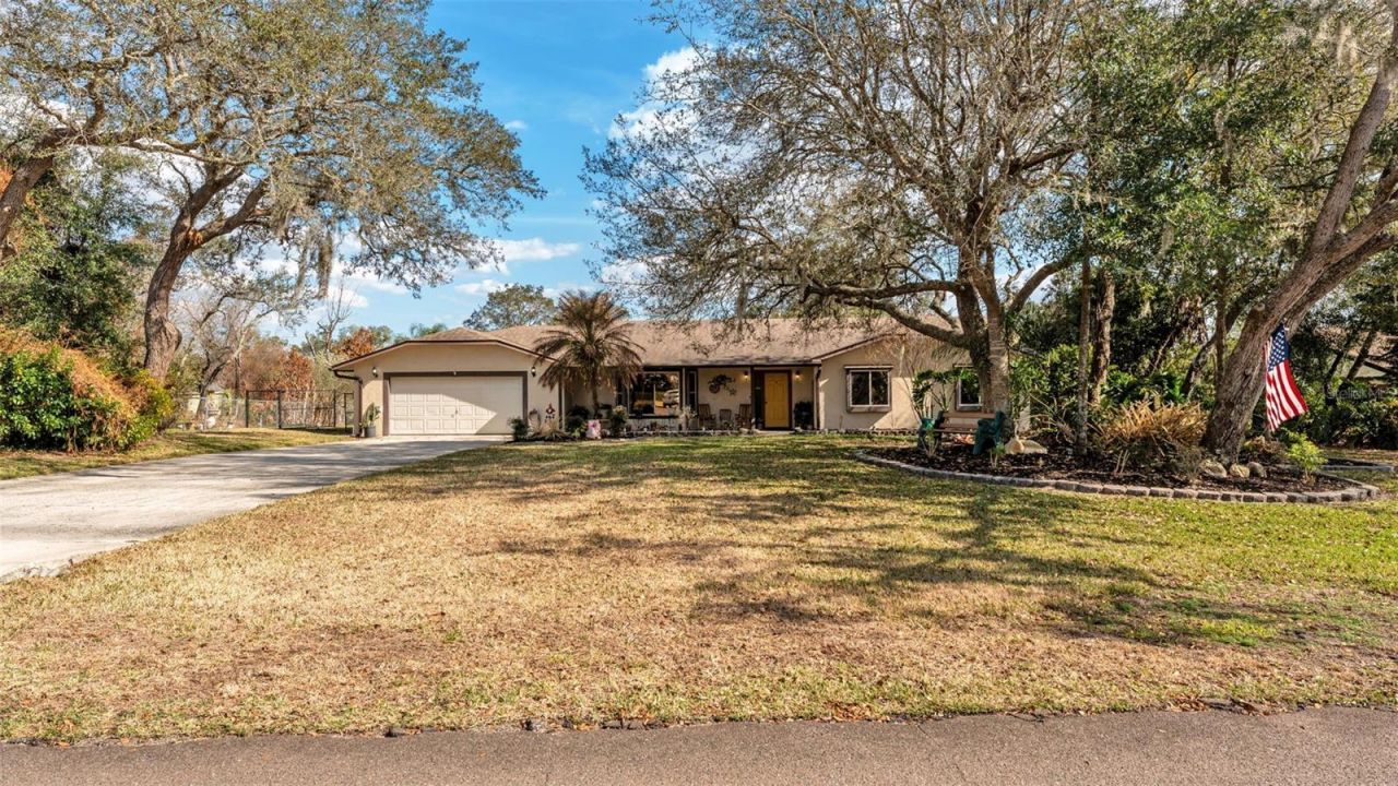 Located in the sought-out community of SPRING PINES! This amazing home is situated on a .55-acre lot. Drive up and you'll fall in love with the beautiful mature landscaping in your front yard. Your front covered patio is perfect for visiting or reading your favorite book in your serene setting. Inside you have an open floor plan. Your lovely front living room is warm & inviting incorporated with Bay Windows. The separate family room is open to the kitchen with windows along the entire wall for the view of the back yard and offers access to the covered screen-in back patio. Your amazing kitchen is a chef's dream kitchen with the large island perfect for prepping and serving. You also have a breakfast bar, beautiful Quartz countertops, lazy susan corner cabinet, soft close drawers, lots of cabinets with drawers, deep countertops, tile backsplash, stainless steel appliances, recessed lighting & more! You have 2 ovens one of which is a fancy smart convection oven, microwave. Refrigerator bought in 2024. The main bedroom's bathroom is equipped with a wide vanity, tub, separate tiled walk-in shower, and linen shelving. The main bedroom has a walk-in closet & access to the back screened-in patio via French Doors. The hall bathroom has a lovely, tiled shower. Your half bath is located on the opposite end of the home adjacent to the walk-in utility room. Walk in utility room has shelving. Bedroom 2&3 provide wide double door closets. You won't have any problems with storage in this home with all the closets, the large garage, utility room space, and the storage room in the back. You have a fully fenced-in back yard with double gates offering plenty of space to park your big toys. Home has been wired for generator / RV hookup. Your 2-car garage provides an access door to the back yard as well. Don't miss you have a storage room in the back perfect for all your lawn tools or entertaining outdoor items. Your back yard is absolutely amazing. You have your own basketball court, firepit area, multi-level open patio deck areas, BBQ areas and much more! If you are a gardener, you will love this property! You have pineapple plants, olive & fig trees to start you off. The wonderful covered screened-in patio overlooks the beautiful & entertaining backyard. This home is the perfect home for entertaining both inside out outside so, get ready, your home will be the place where all the gatherings and celebrations happen. A/C replaced Nov 2021. A/C duct work replaced in 2025. Roof only 7 years old, Hot Water Heater 2019 installed w/ pressure tank. Newer gutters w/ screens. We had some unusually cold snaps when pics were taken. Everything will green up in no time! Be sure to check out the Virtual Tour link. Welcome Home!